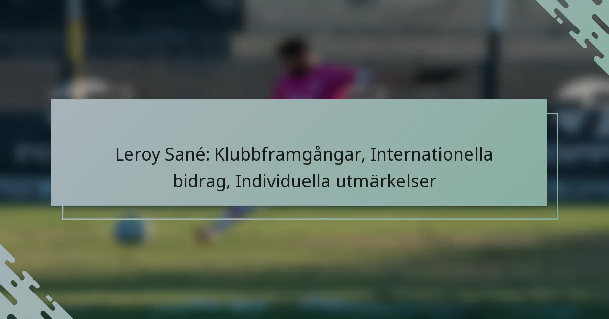 Leroy Sané har etablerat sig som en formidabel kraft inom fotboll, med anmärkningsvärda framgångar både på klubb- och internationell nivå. Med sina exceptionella färdigheter och bidrag har han inte bara hjälpt till att säkra otaliga titlar utan också tjänat individuella utmärkelser som framhäver hans talang som anfallare. Hans påverkan på planen är tydlig genom hans prestationer för det tyska landslaget, där han har blivit en nyckelspelare i stora turneringar.